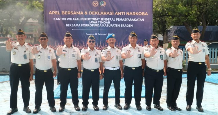 Apel yang dipusatkan di Halaman Depan Lapas Kelas IIA Sragen itu diikuti oleh seluruh Kepala Unit Pelaksana Teknis Pemasyarakatan se-Jawa Tengah serta jajaran pegawai dari wilayah Solo Raya. Selain pembacaan dan penandatanganan deklarasi secara simbolis, kegiatan juga dirangkaikan dengan pemusnahan barang hasil penggeledahan serta pelaksanaan tes urin sebagai langkah konkret memastikan integritas dan kebersihan dari penyalahgunaan narkotika.
