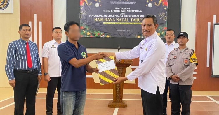 Kepala Rutan Kelas IIB Blora, Sugito, bertindak sebagai inspektur upacara dan secara langsung menyerahkan Remisi Khusus Hari Natal Tahun 2025 kepada tiga narapidana Rutan Blora yang beragama Kristen dan telah memenuhi persyaratan sesuai ketentuan perundang-undangan.