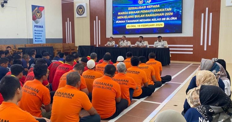 BLORA - Rumah Tahanan Negara Kelas IIB Blora menggelar sosialisasi kepada seluruh Warga Binaan Pemasyarakatan (WBP) dalam rangka menyambut Bulan Suci Ramadhan Tahun 2026. Kegiatan tersebut dilaksanakan di Aula Rutan Blora dan diikuti oleh seluruh warga binaan. Rabu (18/2/2026)